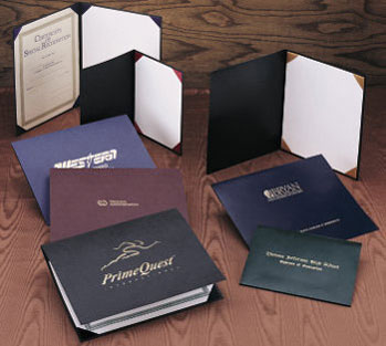 Product Info: These diploma folder holders can be displayed on a shelf or on a wall. Comes with easel back for wall or desk use. The colored edge trim and closely matching ribbons mounted on a 15 point white board will highlight your document. There is no imprinting available on this product. You can use this leatherette award cover vertically or horizontally.