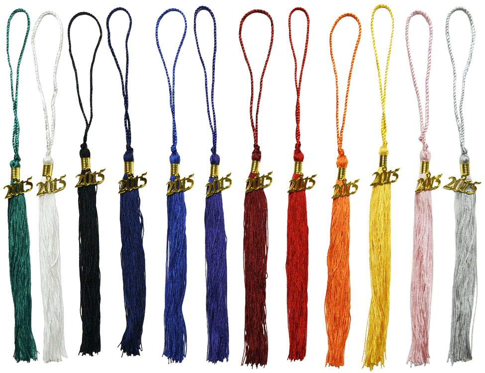 Single colored tassels for preschool, kindergarten, high school or university graduates to wear with their cap/gown. Measures 9 inches. Tassel colors : White, Black, Navy Blue, Royal Blue, Purple, Green, Burgundy, Red, Orange, Pink, Silver or Gold