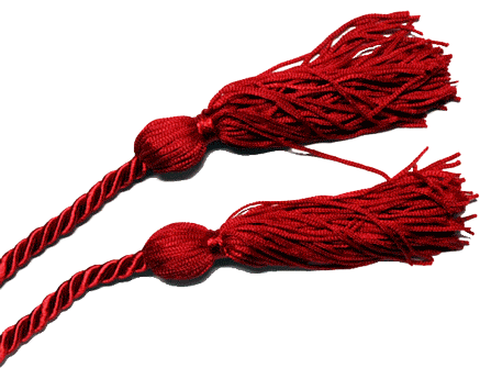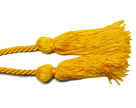 Single solid color honor cords intertwined threads with tassel ends. Honor cords for students achievements to wear on commencement day. Measures 62 inches. Cord colors : White, Red or Gold