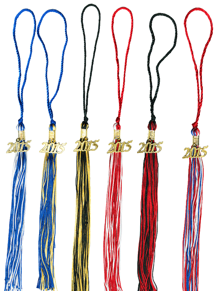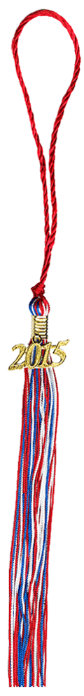 Two colored tassels with a gold charm for the class of 2015. Measures 9 inches. Tassel colors : White & Royal Blue, Gold & Royal Blue, White & Red, Red & Black, Gold & Black or Red White & Blue
